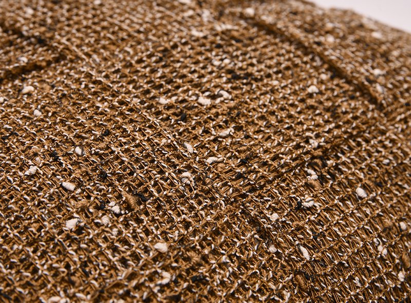 - Features a deep, open-grid basketweave fabric in a rich coffee-brown.