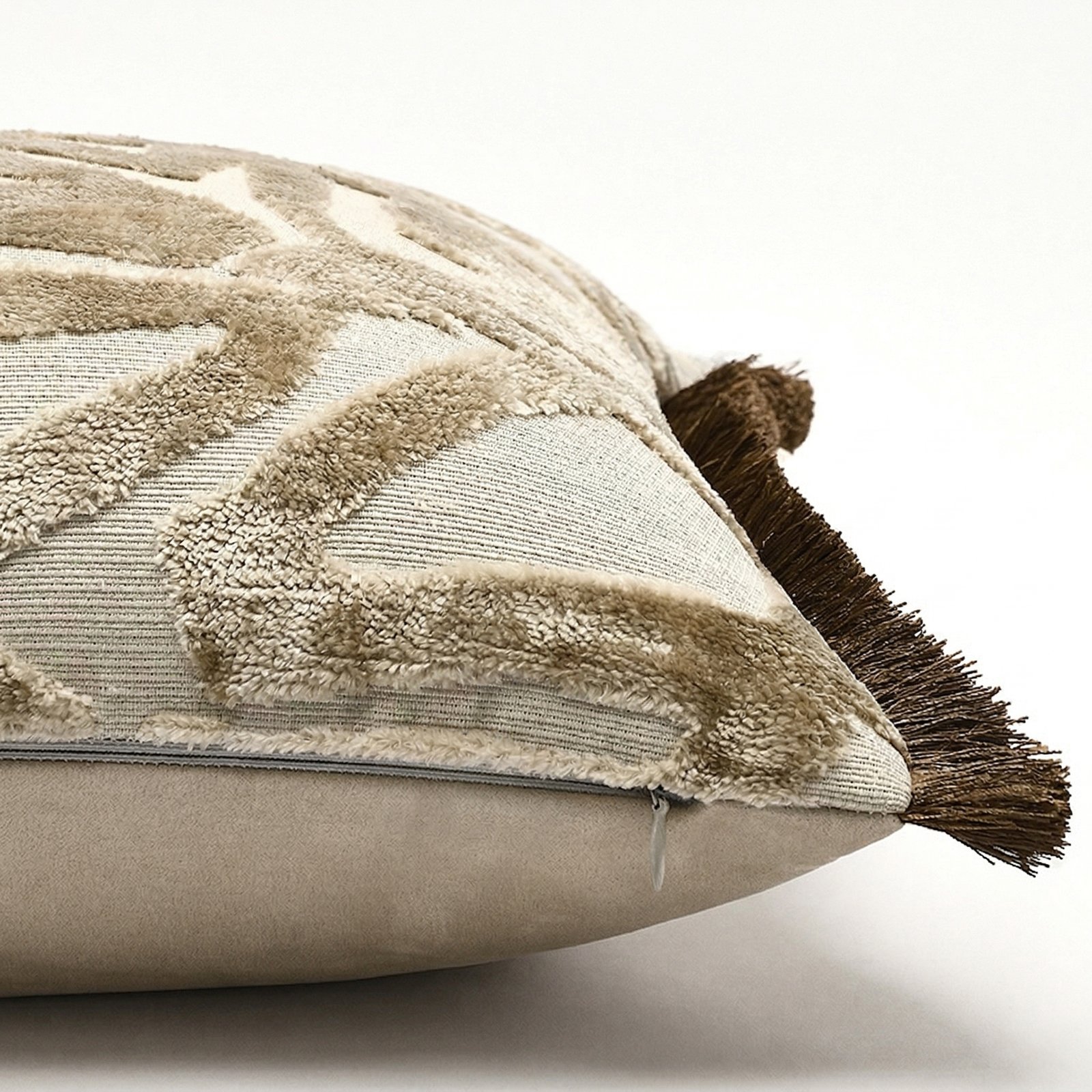 This luxurious black throw pillow cover features a rich, geometric embroidery on the front, creating a tactile and visually engaging 3D texture. The reverse is made from a sleek, faux leather fabric, providing a smooth, modern contrast. Finished with a hidden zipper for a seamless look, this cover is the perfect statement piece for adding a sophisticated, contemporary edge to any space.