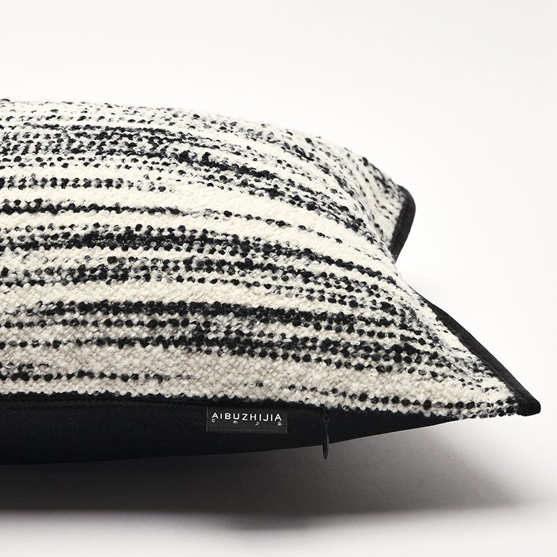 - Unique fabric with raised, dot-like black and white textural stripes.