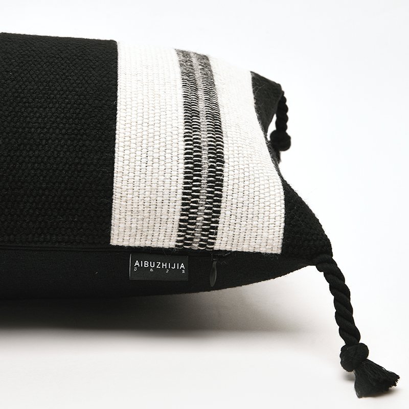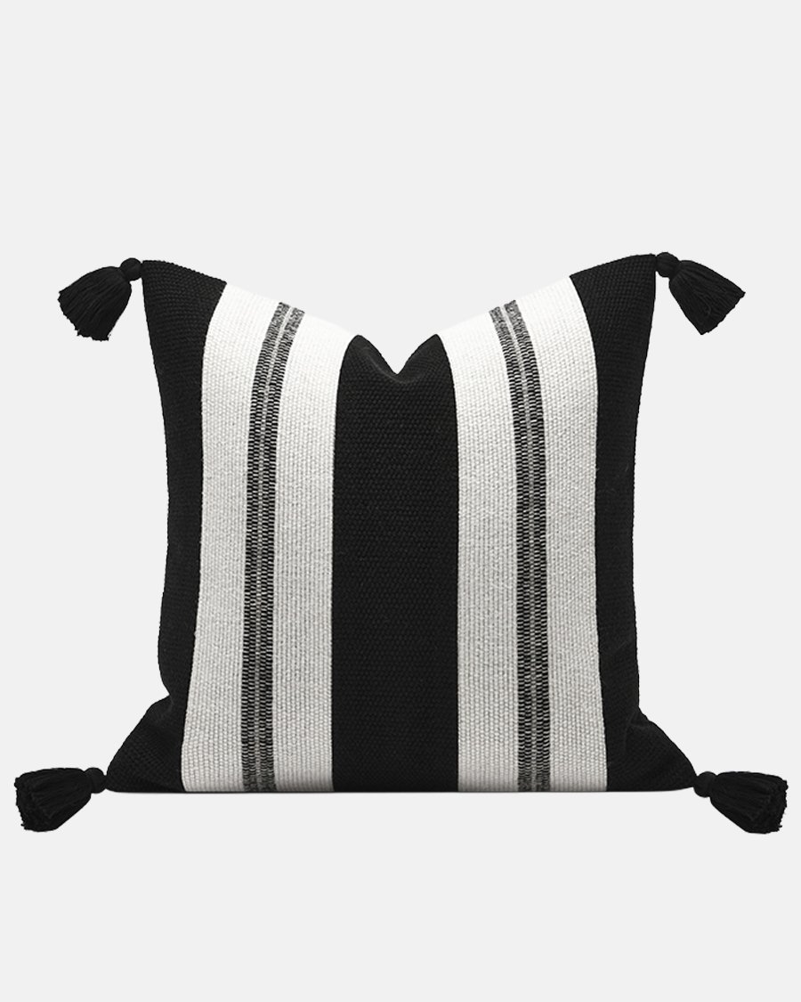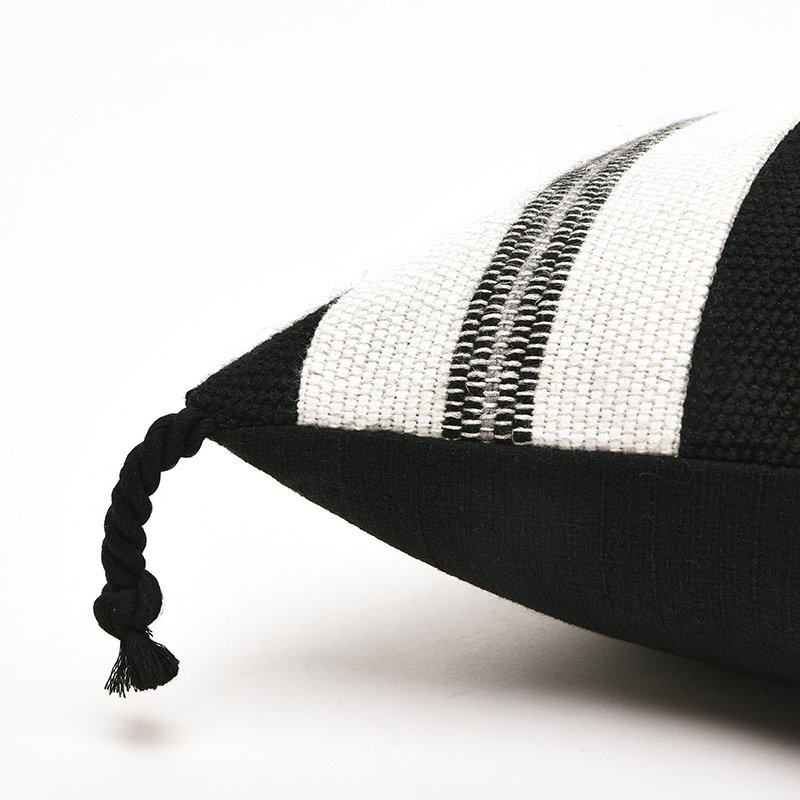 • Accented with four charming black corner tassels.